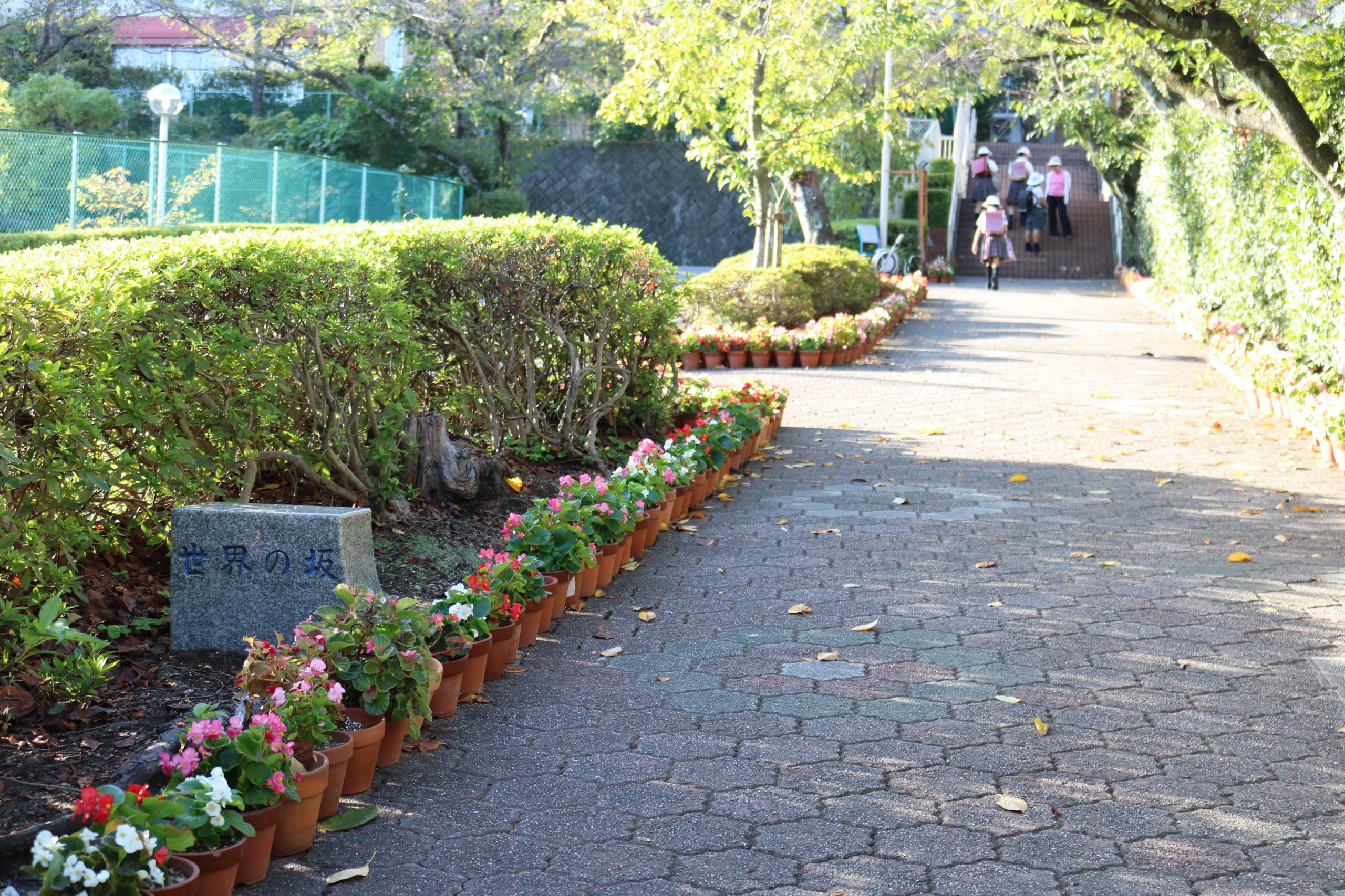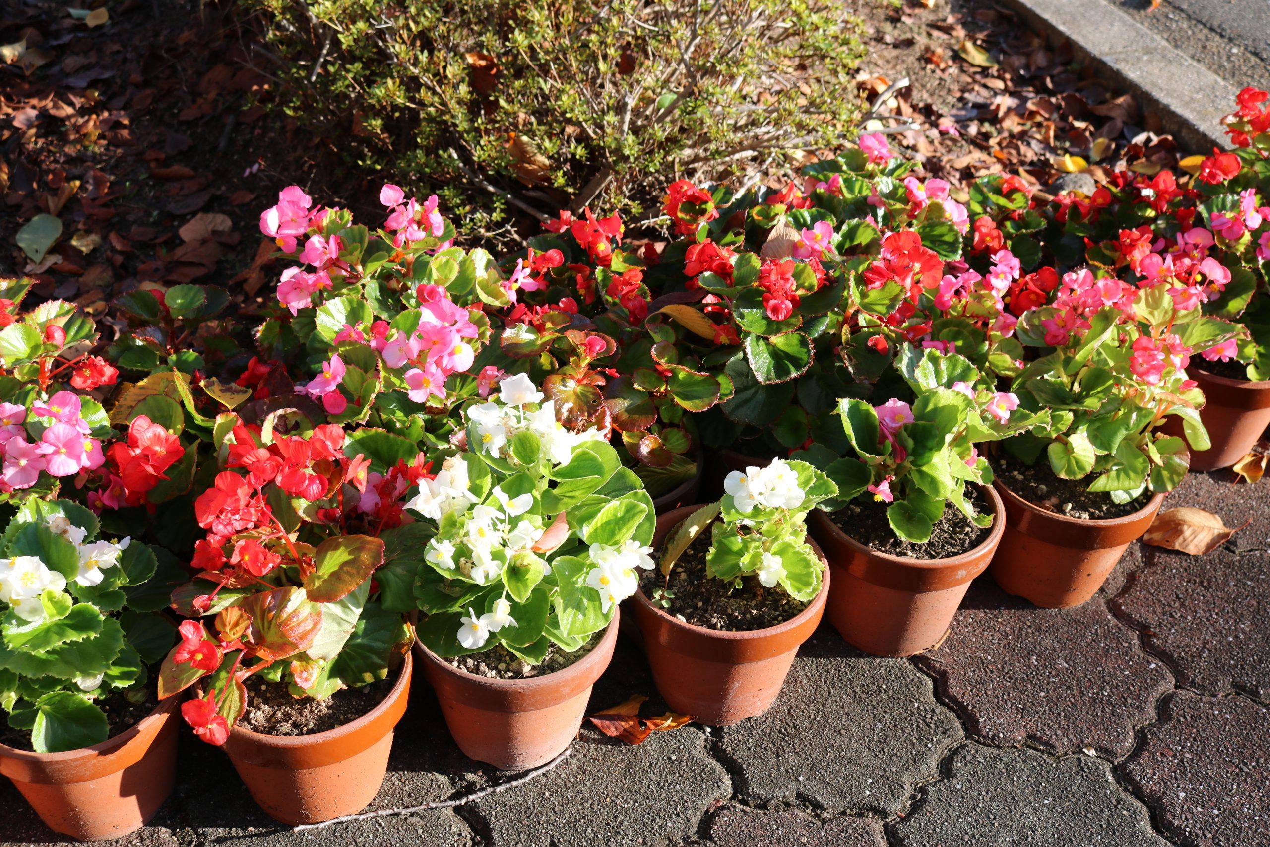 この秋(9月28日)には、寝屋川市の皆さまより1,237鉢のベゴニアを届けていただきました。校門から校舎へと続く通路を埋め尽くすように並べられた花々は、まるで子どもたちを優しく迎えるように咲き誇り、登下校のひとときに温もりを添えています。
