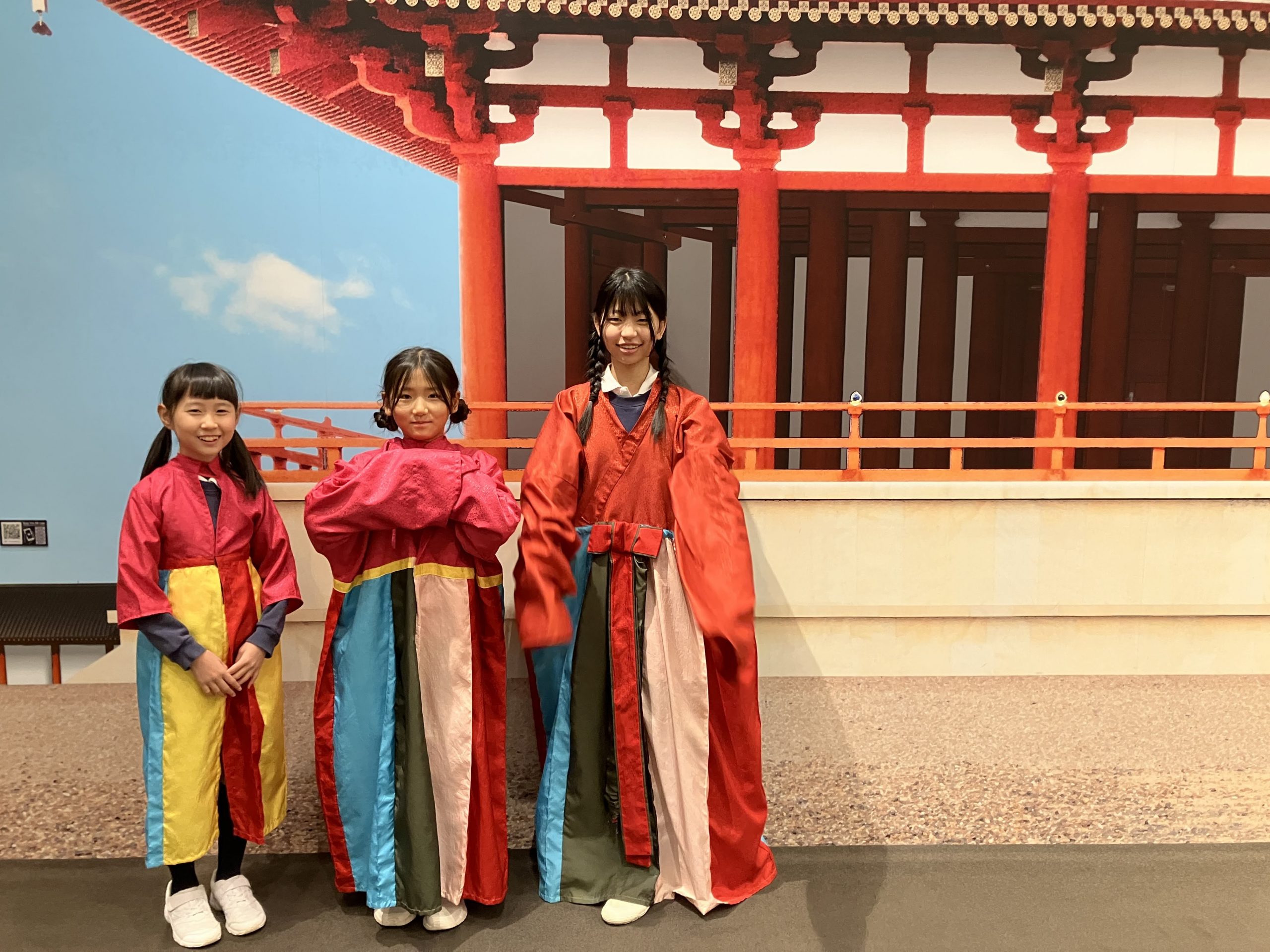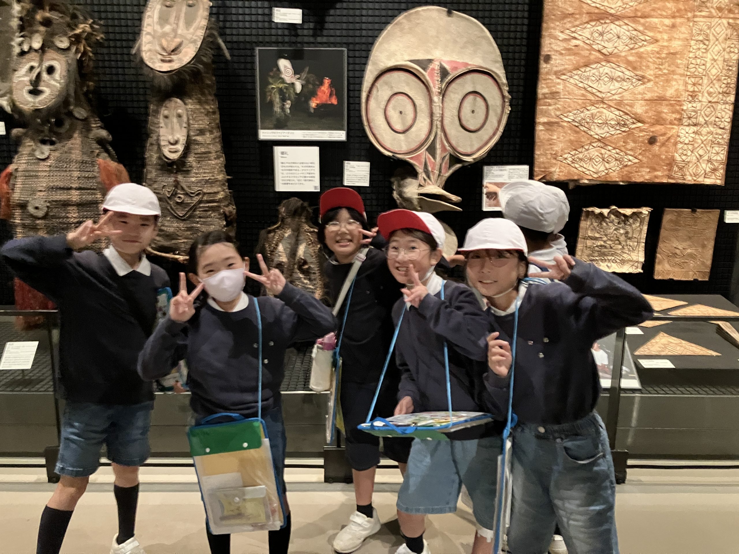 11月に秋のフィールドワークを実施しました。1年生はキッズプラザ大阪で社会のしくみや科学の不思議に触れ、友達と協力しながら多くの発見をしていました。2年生は長居公園と大阪市立自然史博物館で、色づく公園の自然観察や恐竜・動物の展示を通して学びを深めました。3年生は深北緑地で、広い芝生や自然の中で体を動かし、落ち葉や水辺を観察するなど五感を使った活動を楽しみました。4年生は国立民族学博物館で世界の文化や暮らしに触れ、国や地域の違いに驚きながら社会科の学びを広げました。5年生は平城宮跡を訪れ、復元された大極殿を前に奈良時代の都の姿に思いをはせ、歴史が今につながることを実感していました。秋晴れの下、どの学年も自然や文化に触れながら、仲間と共に充実した時間を過ごしました。今回のフィールドワークを通して、教室では得られない多くの学びと感動を得ることができました。