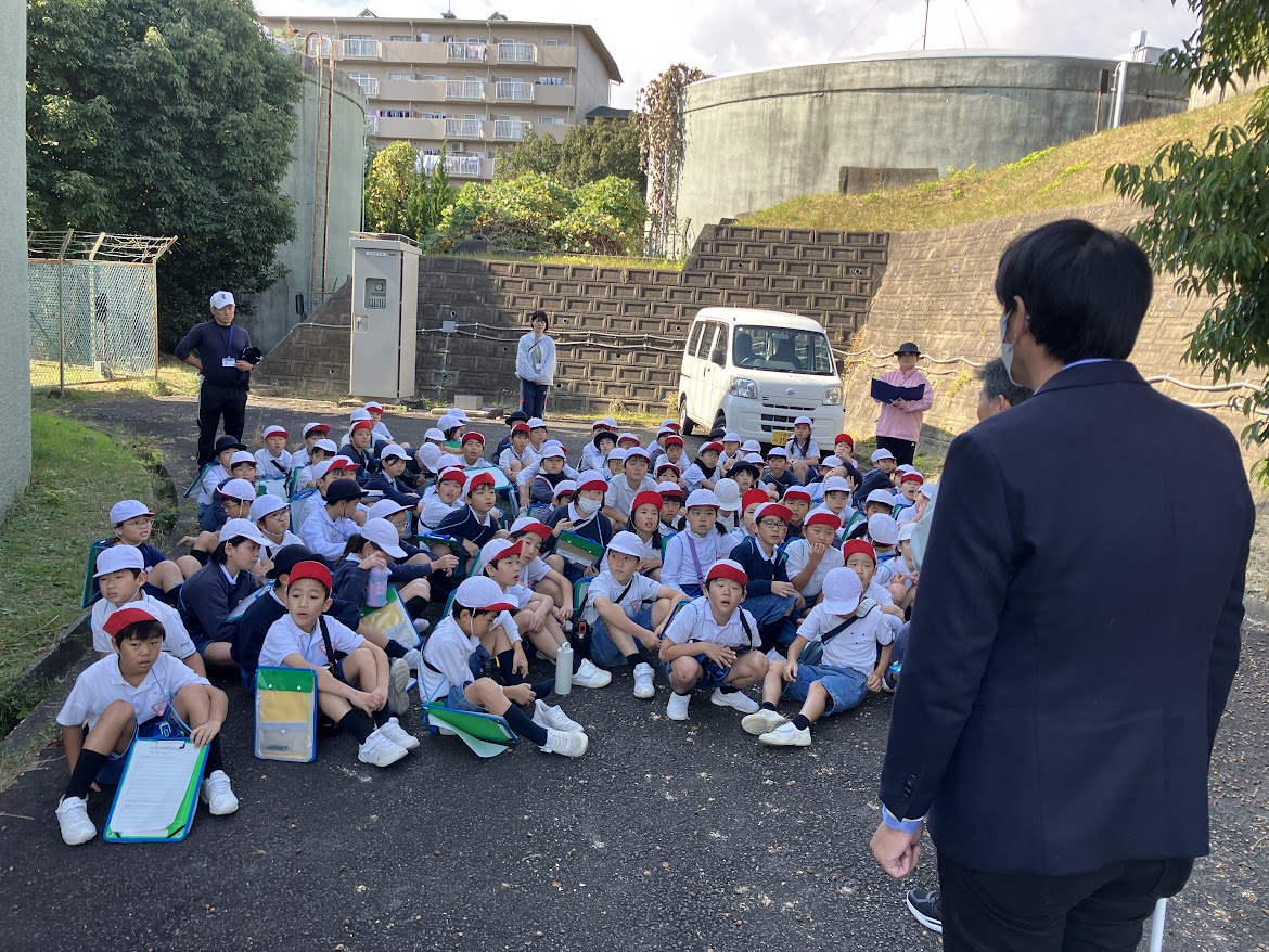この煙突は、本校からほど近い妙見山貯水池の中にあり、学校からも山の上に煙突が見えることから、子どもたちには親しみを込めて「えんとつ山」と呼ばれています。