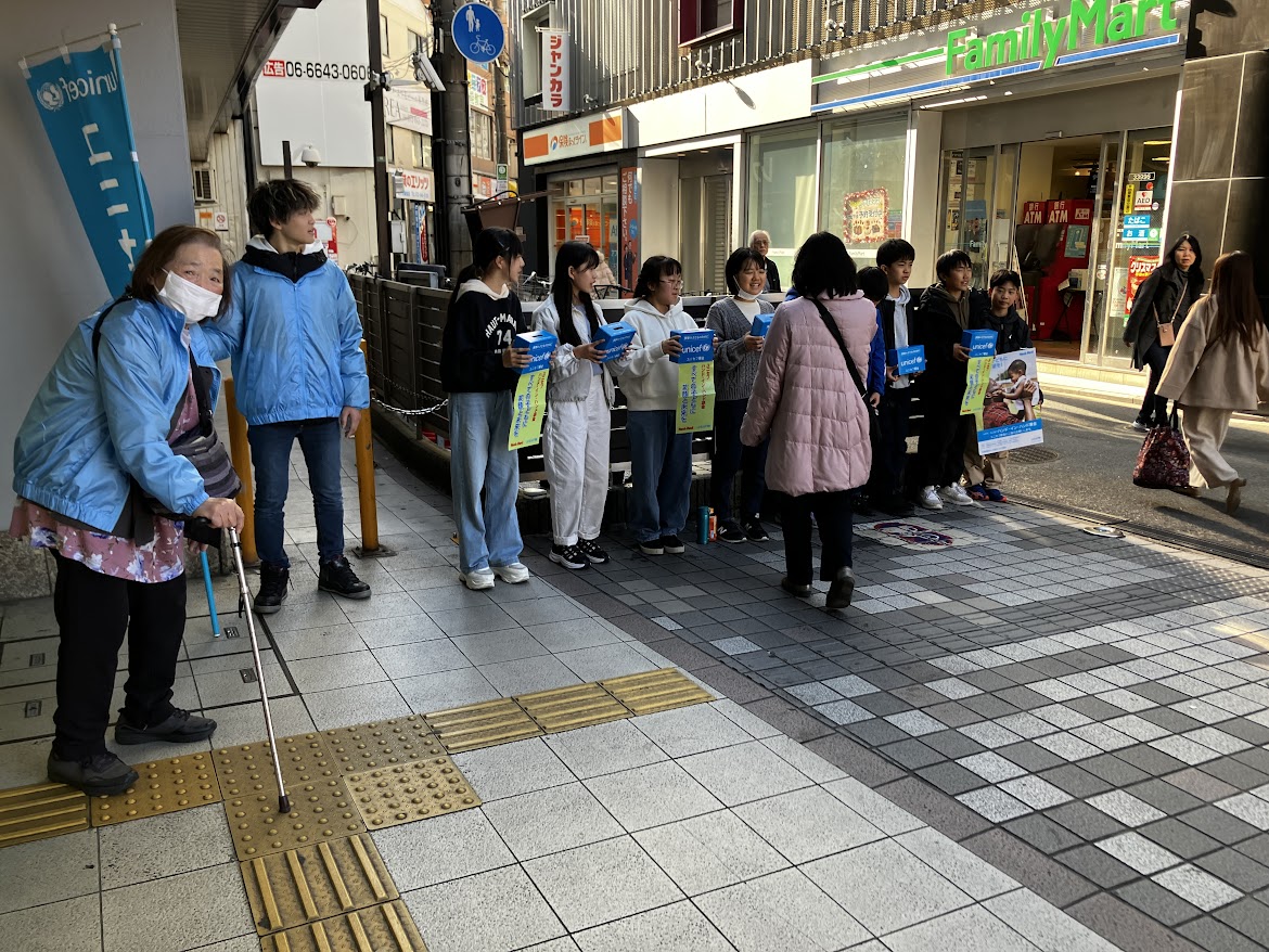 また、11月30日には、6年生の希望者が「ユニセフ ハンド・イン・ハンド(街頭募金)」に参加しました。京阪電車枚方市駅南口やロータリー周辺で、募金への協力を呼びかけると、多くの市民の方々が足を止め、温かい真心を寄せてくださいました。学びを行動につなげ、人と人とのつながりを実感できる、貴重な経験となりました。